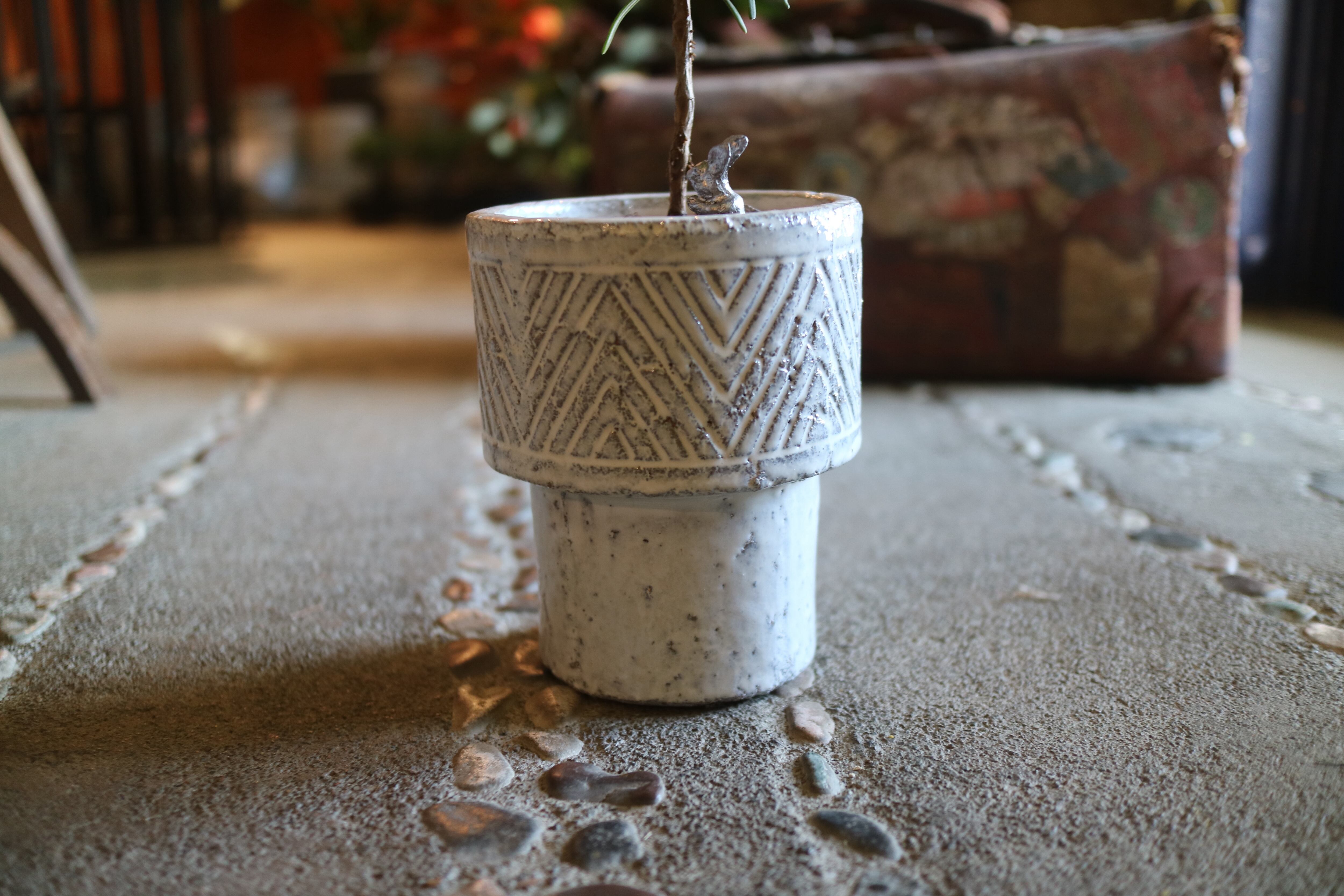 アンティーク風の陶器のコンテナに植え替えました。穴があいているので水やりも楽ちん。